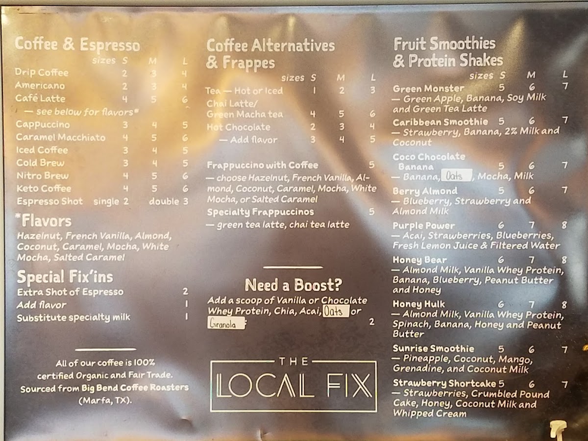 The beverage selection is equally enticing, featuring a range of iced teas, espresso drinks, and specialty sodas, all priced around $3.51. With rave reviews highlighting the inviting atmosphere and warm service, The Local Fix has quickly become a favorite for breakfast and lunch. Whether you're enjoying a relaxed meal indoors or in their outdoor seating, it promises a delightful dining experience that you won't forget!
